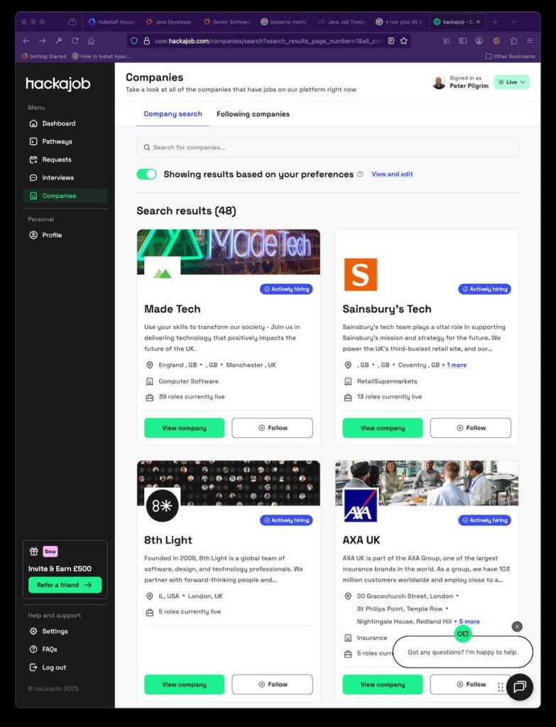 I found CV Library to be useful alternative to JobServe. The top site to find jobs in the autumn 2025 was LinkedIn Jobs. They have invested in the AI search, which was helpful in sending alert notifications to jobs according to the role. It is well worth your time, installing the LinkedIn mobile app and receiving alerts.