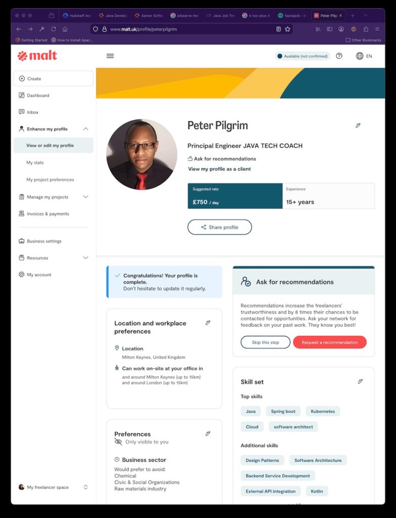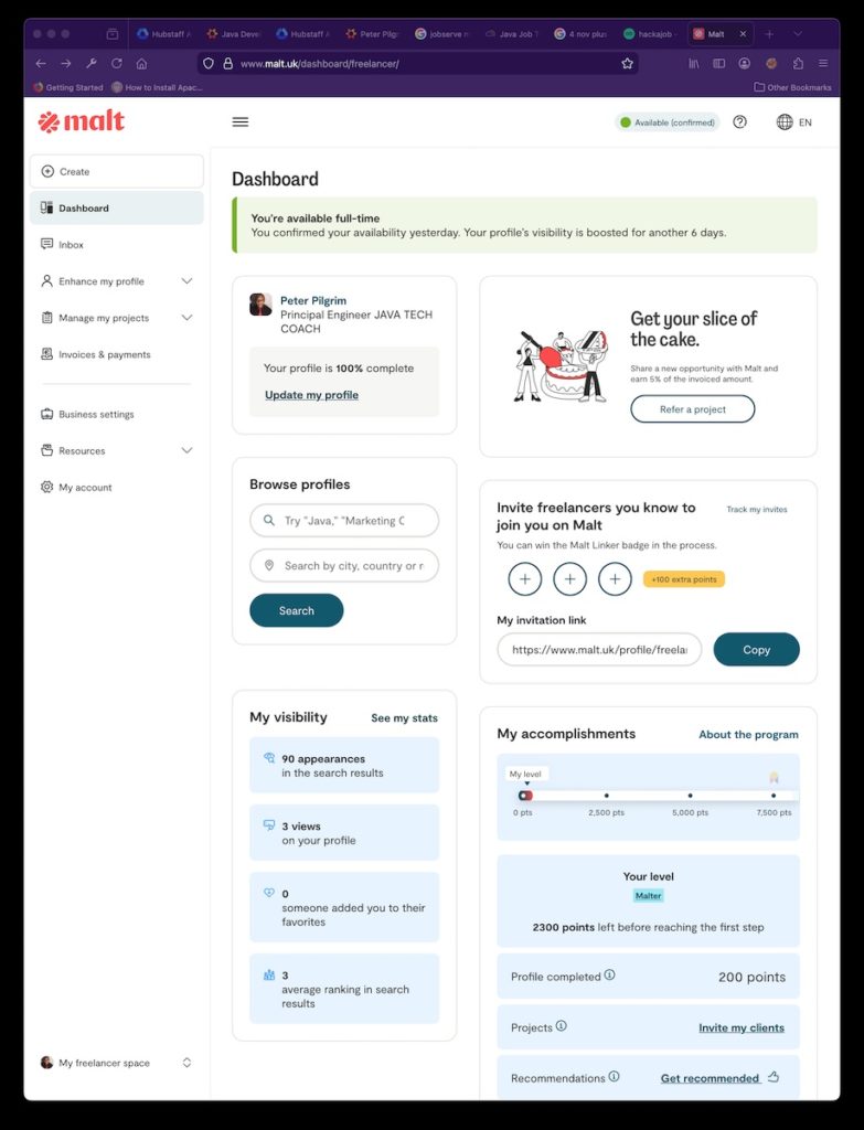 - Malt https://www.malt.uk/dashboard/freelancer/